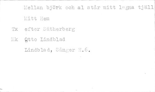 //// rellan björk och al står mitt 1,7gna tjälL Mitt Hem //// Tx efter Sätherberg //// Ek qtto Lindblad //// Lindblad, Sånger H.6. ////