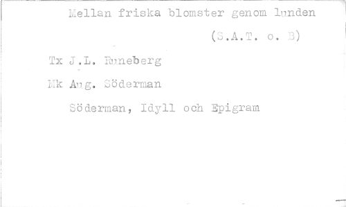 //// Kellan friska blomster genom lunden //// (S.A.T. o. B) //// Tx j.L. Runeberg Ek Aug. Söderman //// Söde/man, Idyll och Epigram ////