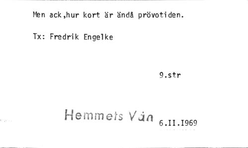 //// Men ack,hur kort är ändå prövotiden. Tx: Fredrik Engelke //// 9.str //// Heinm&s Vin 6.11.1969 ////