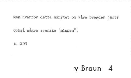 //// Men hvarför detta skrytet om våra bragder jämt? Också några svenska "minnen". //// s. 233 //// V Braun 4 ////