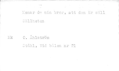//// Menar dn min bror, att den är säll Sällheten //// Yk 0. Åhlström //// Ståhl, Vid bAlen nr 21 ////