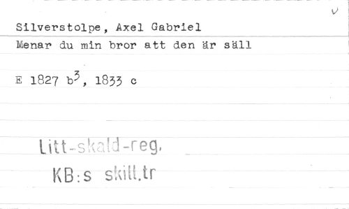 //// Silverstolpe, Axel Gabriel //// Menar du min bror att den är säll //// E 1827 b 1833 c //// lid-skat,J-reg, //// KB:s //// V I ////