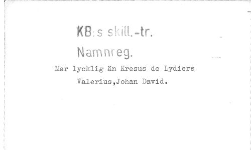 //// KB: s skitt.-tr. //// Namnreg. //// Mer lycklig än Kresus de Lydiers //// Valerius,Johan David. ////