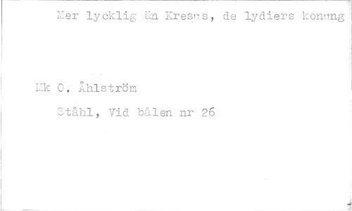 //// Mer lycklig än Kresns, de lydiers konung //// Ek 0. I'llilström //// Ståhl, Vid bålen nr 26 ////