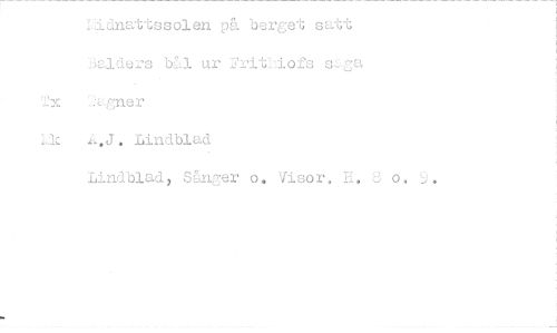 //// Ijidnattssolen på berget satt //// balders IY:L1 ur Fritlofs //// Tx f;Jgner //// Lk Lindblad //// Lindblad, Sån3er o. Visor. 8 o. 9. ////