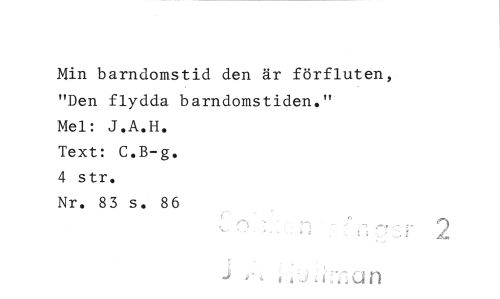 //// Min barndomstid den är förfluten, "Den flydda barndomstiden." //// Mel: J.A.H. Text: C.B-g. 4 str. //// Nr. 83 s. 86 //// å ////