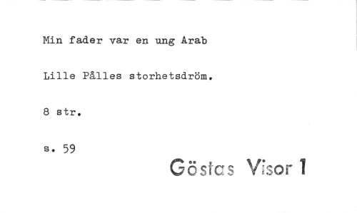 //// Min fader var en ung Arab Lille Pålles storhetsdröm. 8 str. //// s. 59 //// Gösics Vsor 1 ////