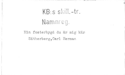 //// KB:s //// Namnreg. //// Min fosterbygd du är mig kär Sätherberg,Carl Herman ////