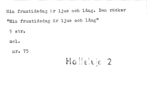 //// Min framtidsdag gir ljus och lång. Den räcker "Min framtidsdag är ljus och lång" //// 5 str. //// mel. //// nr. 75 //// Fl , 2 ////
