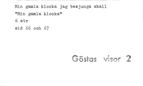 //// Min gamla klocka jag besjunga skall "Min gamla klocka" //// 6 str //// sid 66 och 67 //// Göstas vLso, ////