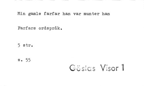 //// Min gamle farfar han var munter han //// Farfars ordspråk. //// 5 str. //// se 55 //// s 'V:sor 1 ////