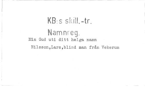 //// KB: s skitt.-tr. //// Namnreg. //// Min Gud uti ditt helga namn Nilsson,Lars,blind man från Vekerum ////