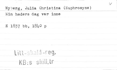 //// Nyberg, Julia Christina (Euphrosyne) Min heders dag ver inne //// E 1837 bb, 1840 P //// KB:s- -skillitr ////