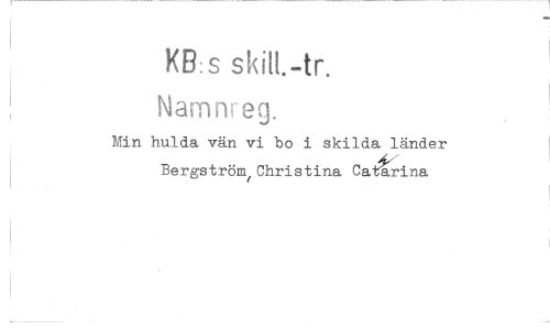 //// KB: s skill.-tr. //// Namnreg. //// Min hulda vän vi bo i skilda länder BergströmiChristina CaAvrina ////