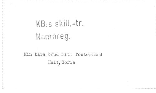 //// KB: s skitt.-tr. //// N mnreg. //// Min kära brud mitt fosterland //// Hult Sofia ////