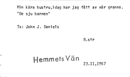 //// Min kära hustru,idag har jag fått av vår granne. "De sju barnen" //// Tx: John J. Daniels //// 8.str //// Hemmets Vän 23.11.1967 ////