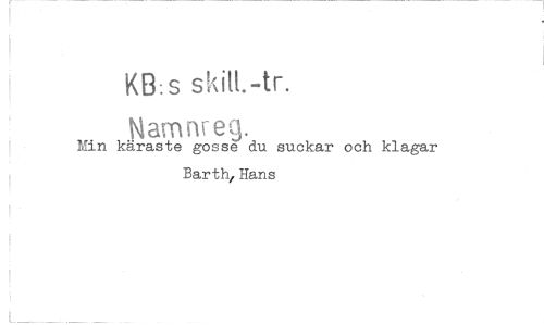 //// KB-.s skill.-tr. //// Namnr //// Min käraste gosse du suckar och klagar Barth/Hans ////