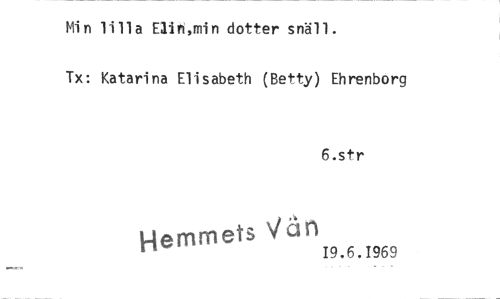 //// Min lilla Eiln,min dotter snäll. //// Tx: Katarina Elisabeth (Betty) Ehrenborg //// 6.str //// Hennmets Vän 19.6,1969 ////
