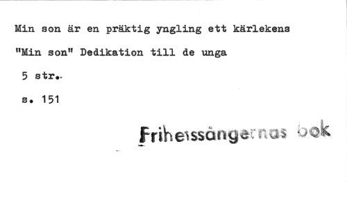 //// Min son är en präktig yngling ett kärlekens "Min son" Dedikation till de unga //// 5 str.. //// so 151 //// FriheIssångar-r.44. ////