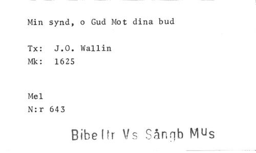 //// Min synd, o Gud Mot dina bud //// Tx: J.0. Wallin Mk: 1625 //// Mel //// N:r 643 //// Bibeitr Vs Sånqb Mus ////