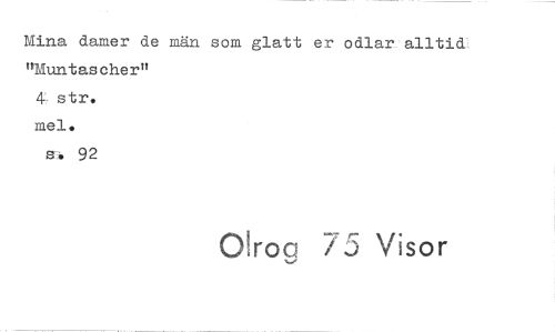 //// Mina damer de män som glatt er odlar alltid, "Muntascher" //// str. //// mel. //// s.-4 92 //// Okog 5 Visor ////