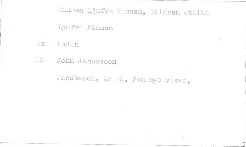//// Linnen ljufva :Linnen, Brinnen stilla Lj.ufVa //// f2x Lodin //// Lk John Jacobsson //// Jacobsson, Op 30. Fem nya visor. ////