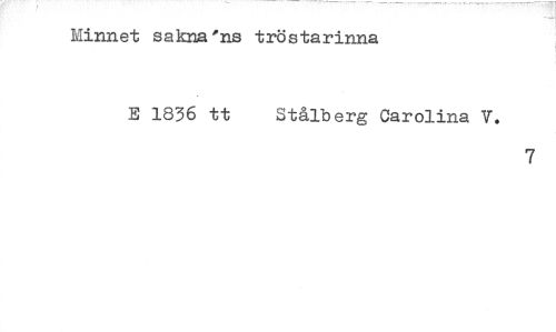 //// Minnet sakna'ns tröstarinna //// E 1836 tt Stålberg Carolina V. //// 7 ////