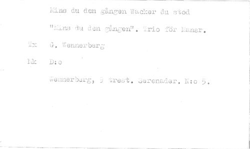 //// Viine du den gången Wacker du stod "ne du dan .Tången", Irio för Lansr. Tx G. Wennerberg //// 12c D:o //// W.ennerberg, 3 trest. :Jerenadar. N:o 5. ////