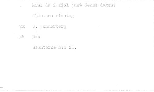 //// Lins du i fjol just denna dagen? GlUn.ccus ulss-iJag //// '2x G. ennerberg //// ink o //// Gluntarna N:o 21. ////
