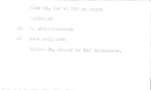 //// ni, hur vi här om dagen Kupletter //// Jhristiernsson //// Hallström, L-ånger ur Per Svinaherde . ////