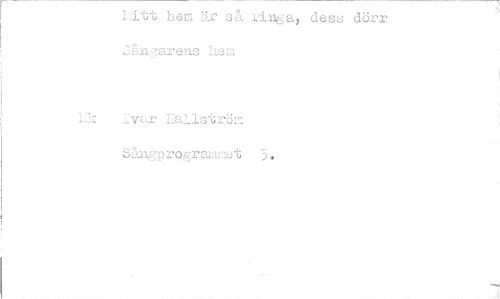 //// Litt hem är så ringa) dess dörr Jångarens hem //// Eallström //// Sän5xrograrnat 3„ ////