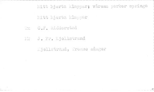 //// 'Mitt hjerta klappar; vårens parker springa Litt hjerta klappar //// 0.2. hidderstad //// 1=k å. Kjellstrand //// Irenae sånger ////