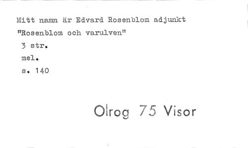//// Mitt namn är Edvard Rosenblora adjunkt "Rosenblom och varulven." //// 3 stro //// mei, //// so 140 //// Okog 7 5 Visor ////