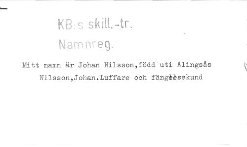 //// s skitt.-tr. //// Namnveg. //// Mitt namn är Johan Nilsson,född uti Alingsås Nilsson,Johan.Luffare och fängIlsekund ////