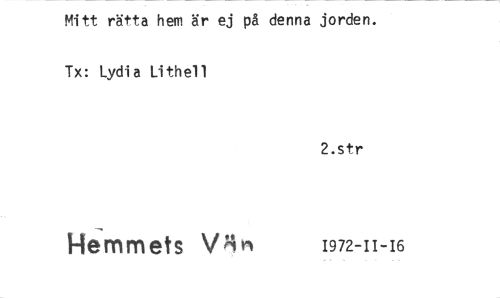 //// Mitt rätta hem är ej på denna jorden. Tx: Lydia Lithell //// 2.str //// Hemmets Viin 1972-11-16 ////