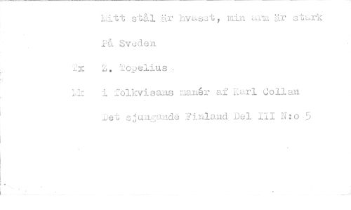 //// L..itt stål är hvasst min arm är stark Sveden. //// Z. lopelius //// '-- i fölkvisaas manår af vLari Co Lian Det sjuggande Finloaid Del III N: o 5 ////