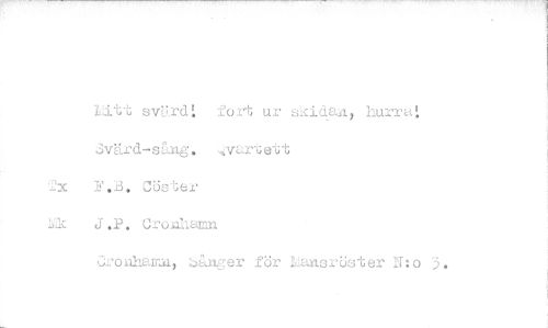 //// lått svärd! fort ur skida-A, hurra! Svärd-sång. vartett //// 2x P.S. Zöster //// J.P. Cronhamn //// Grouhamu, Sånger för Lansröster Nlo 3, ////