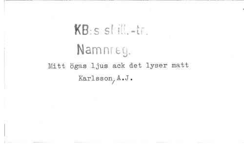 //// KB: s sf //// Namnr Lcj. //// Mitt ögas ljus ack det lyser matt Karlsson A.J. ////