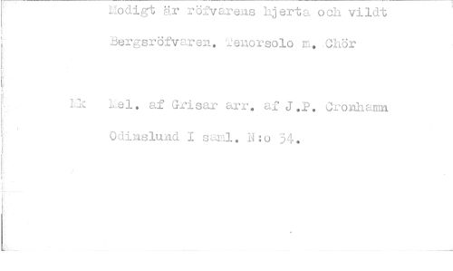 //// lodigt är röfvareAs hjerta och vildt //// Bergsröfva'xen. 2enorsolo m.,Chör //// Lk kel. af Grisar arr. af J.P. Cronhamn //// Odiuslund i saml. N:o 34. ////