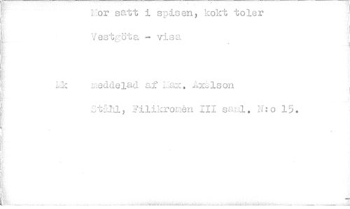 //// Aror satt i s;pisen, kokt toler //// Vestgöta //// _k woddelad af Lar.. laelson //// 2ilikronen III saml. N:o 15. ////