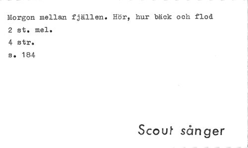 //// Morgon mellan fjällen. Hör, hur bäck och flod 2 st. mel. //// 4 str. //// s. 184 //// Scout sånger ////