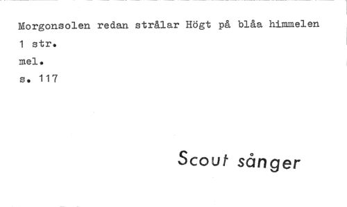 //// Morgonsolen redan strålar Högt på blåa himmelen //// 1 str. mel. //// s. 117 //// Scout sånger ////