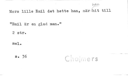 //// Mors lille Emil det hette han, när hit till //// "Emil är en glad man." 2 str. //// mel. //// se 36 ////