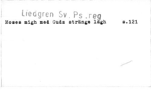 //// liedgren Sv . Ps .reg 8.121 //// Moses migh med Cludz stränge lagh ////
