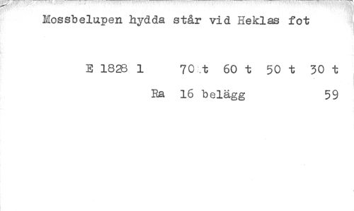 //// Mossbelupen hydda står vid Heklas fot //// E 1823 1 70 t 60 t 50 t 30 t //// Ra 16 belägg 5 9 ////