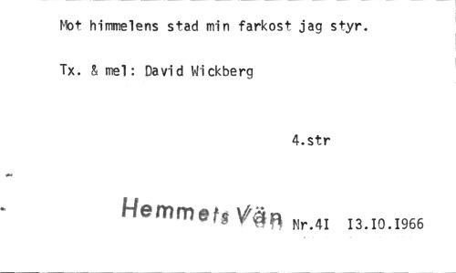 //// Mot himmelens stad min farkost jag styr. Tx. & mel : Davi d Wi ckberg //// 4.str //// Hemmets Vief4 Nr.4I 13.10.1966 ////