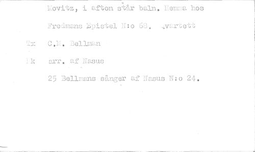 //// Ibvitz, i afton står bnln. Lemna hos -1-fredmans 1:;pistel U:o 68. „-strtett Tx Bellman //// arr. af Nasus //// 2 Bellmans sånger af Uasus N:o 24. //// J ////