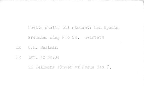 //// Lovitz skulle bli student: han Upsala //// Predmans ding N:0 23. _yartett 2x C.L. 3ellman //// Lk arr. af äasus //// 25 Belliams sånger af Nasus N:0 7. ////