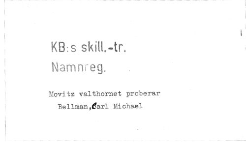 //// KB: s skill.-tr. //// Namnreg. //// Movitz valthornet proberar Bellman,earl Michael ////