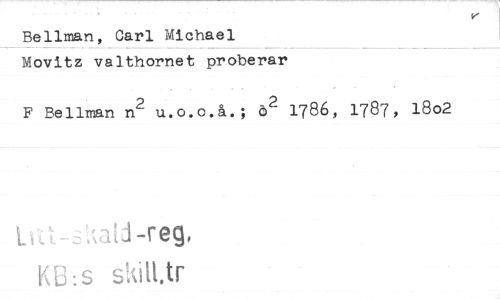 //// Bellman, Carl Michael Movitz valthornet proberar //// F Bellman n2 u.o.o.å.; ö2 1786, 1787, 18o2 //// KO:s ////